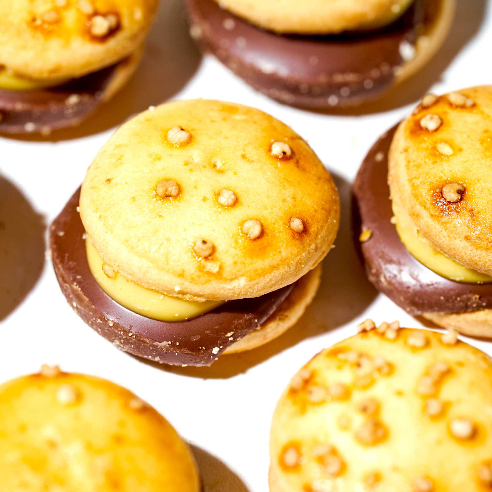 Oreo is the most famous sandwich cookie brand in the world. It’s owned by Nabisco, a subsidiary of American confectionery giant Mondelez International. Oreo cookies have been around since 1912. They consist of two circular chocolate or wheat biscuits pressed against a cream filling. This filling is typically flavored with sweet cream but may include other flavors like strawberry or peanut butter.